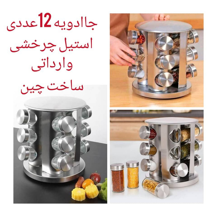جا ادویه ۱۲ پارچه استیل چرخشی